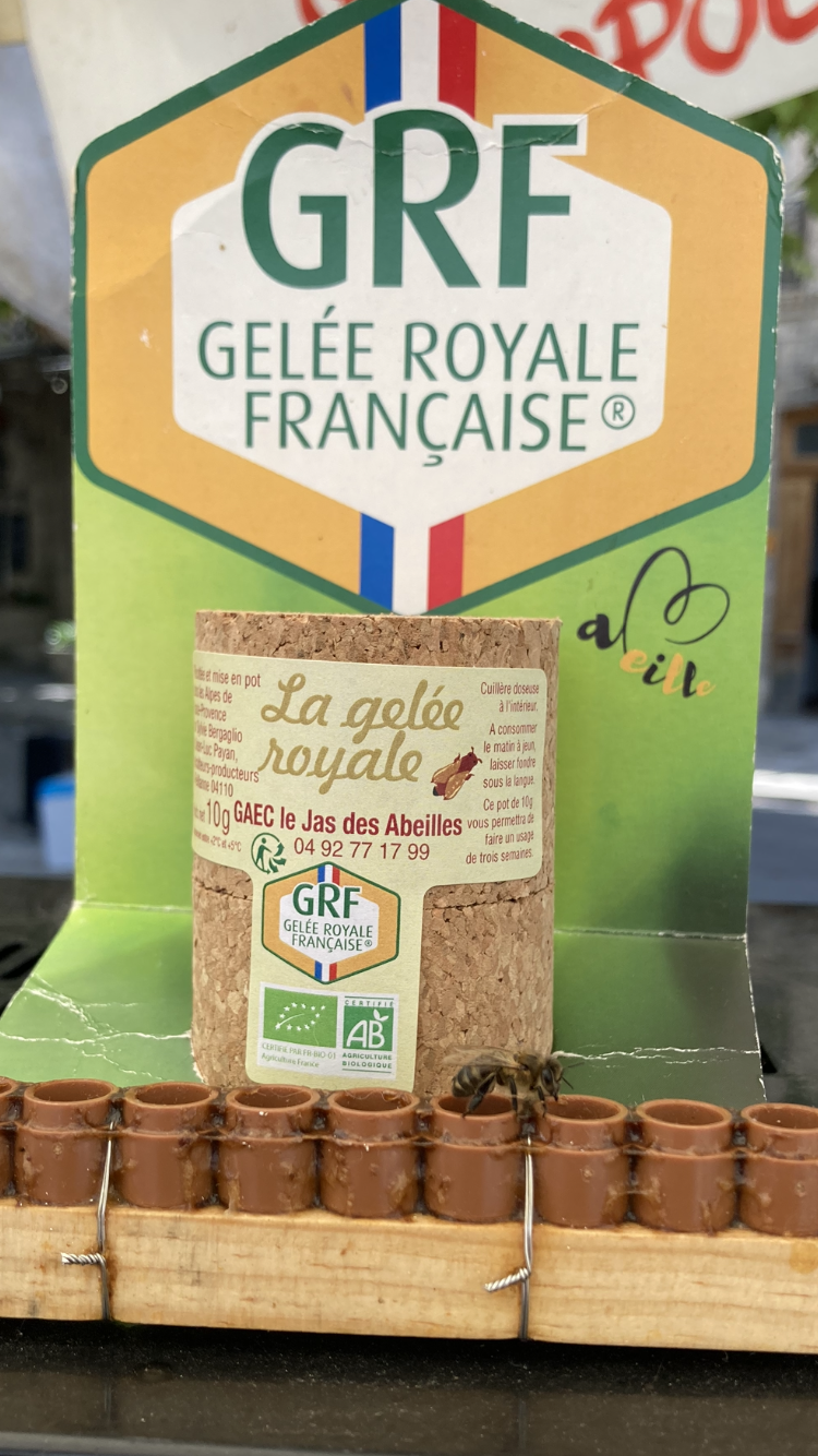 Apiculteur professionnel depuis 25 saisons, ma compagne m'a rejoint il y a 5 ans, et nous avons créé le GAEC (groupement agricole en commun) « Le Jas des abeilles ». Notre miellerie bioclimatique se situe à Reillanne, village des Alpes de Haute Provence, situé entre le Massif du Luberon, la montagne de Lure et le Mont-Ventoux. Le miel de Lavande représente donc notre principale production. Une partie de nos ruches hivernent sur la Côte Bleue, elles sont en place pour la première miellée du printemps en Provence, le miel de Romarin. Une autre partie de nos colonies passent l'hiver sur les côtes varoises, produisant du miel de Bruyère. Depuis quelques années, avec les changements climatiques, la nature provençale au printemps est trop sèche et n'est plus propice au développement des colonies. Aussi pour le bien-être de nos abeilles, nous les transhumons dans des contrées plus verdoyantes, notamment dans les forêts d'Isère pour le miel d'Acacia et de Châtaignier, et en Haute Loire sur des prairies naturelles, pour du miel de Montagne. Les modifications climatiques, la diminution de la biodiversité florale, rendent très aléatoire la production de nos différents miels, aussi nous développons les autres produits de la ruche, aux propriétés complémentaires du miel et tout aussi remarquables: la gelée royale, le pollen, la propolis. En plus de la démarche de l'IGP, Indication Géographique Protégée, avec la certification « Miel de Provence », nous sommes certifiés en agriculture biologique par Ecocert. Nous bénéficions enfin dans la Label GRF, Gelée Royale Française avec les apiculteurs du GPGR.